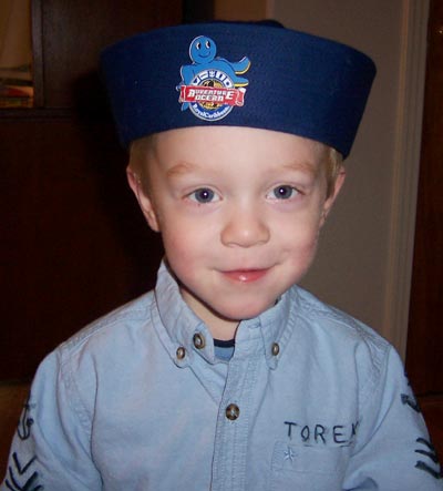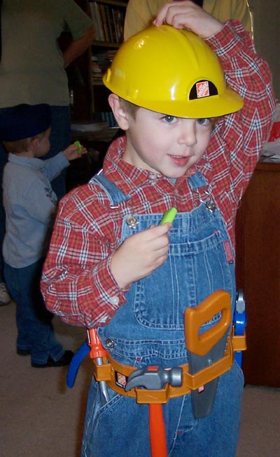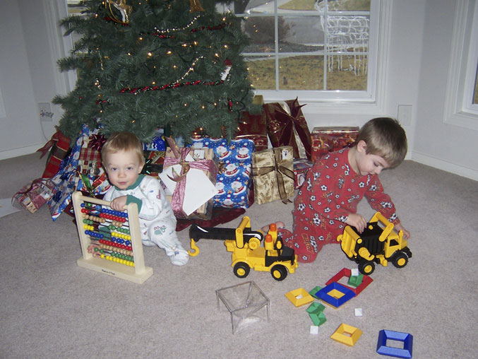 Christmas morning (25 Dec 2003) photo of Sean and AJ.