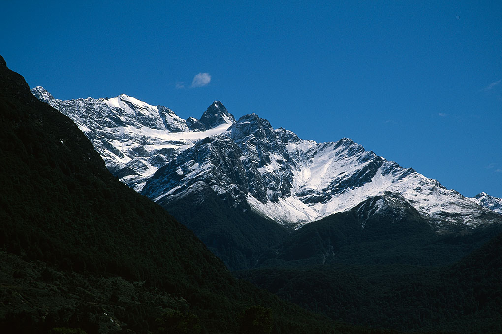 Frames 1-5 are shots of Mt Aspiring, a continuation of those from the previous roll, taken on 21 Feb 2003. Shot 4 is probably the best, although this is on the rather poor 100-300 lens and hence not very sharp. Avalanche Peak is visible as the double-humped peak at the left, with Mt Aspiring a bit to the right of center.
