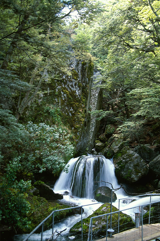 Frames 27 through 36 are from several days later, though, jumping to 24 Feb, skipping over the next two rolls of film.  These are from somewhere along the road to Milford Sound, where the bus stopped to let everyone out for a walk around, photos, and so forth.  (Update: Donn says: "Frames 28-33 are surely The Chasm waterfalls walk; frames 34-36 are probably from the stop we made at the east end of the Homer Tunnel.)