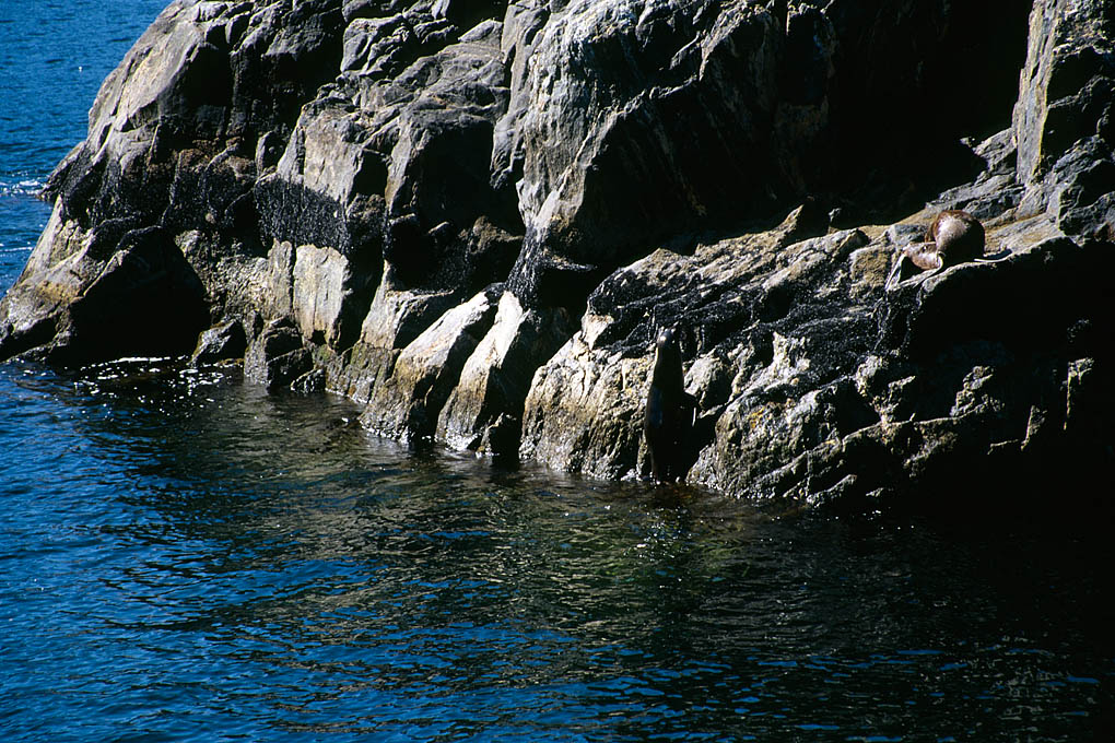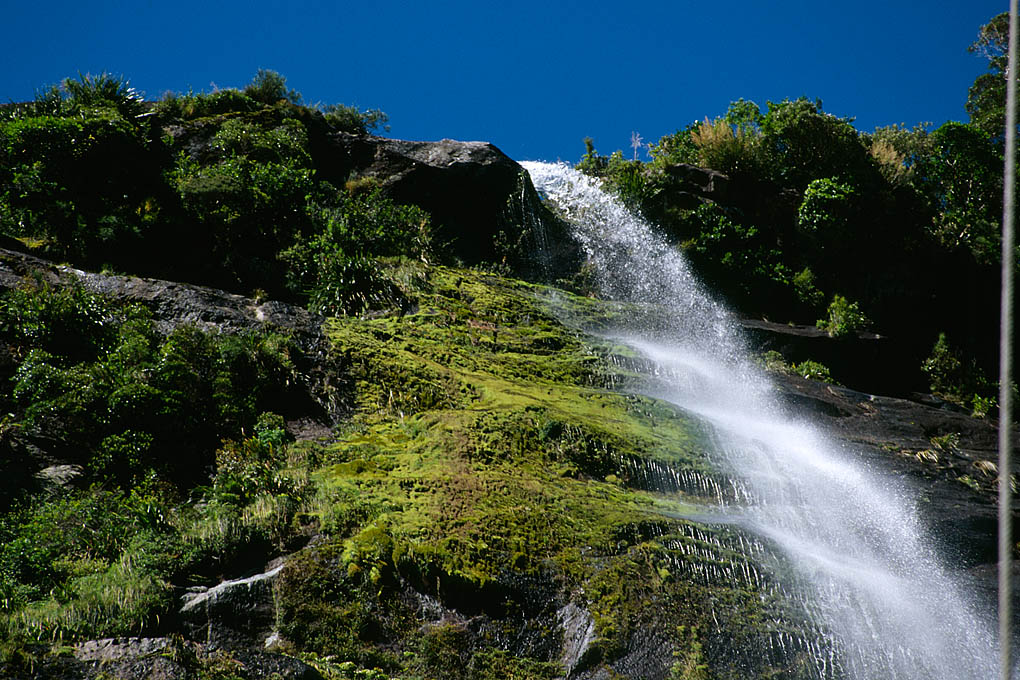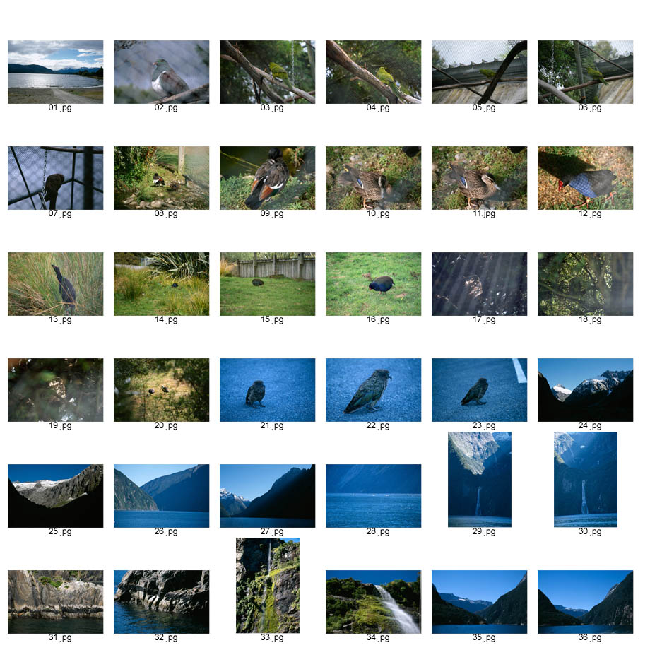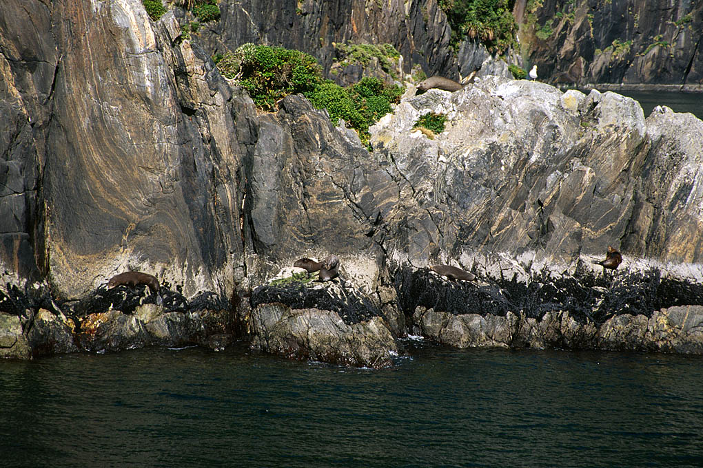 Frames 26 through 36 are shots from the boat, on Milford Sound itself.  I fixed both the the horizon and the colors for the two waterfall shots in frames 29 and 30; the results are in 29a and 30a.  Frames 31 and 32 are of seals hanging out.  They are easier to spot in the first one, but look for the one standing straight up in the second. Frame 34 is a shot from almost (but not quite) underneath the waterfall in frame 33.