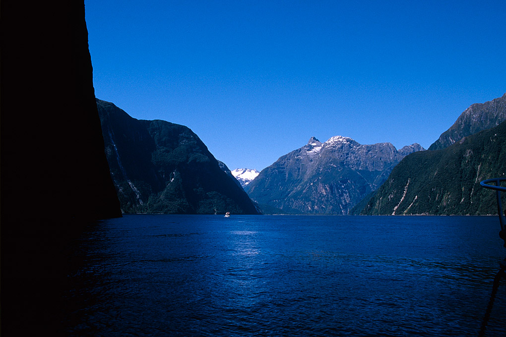 All 36 frames were taken on the boat on Milford Sound, on the way back in from the Tasman Sea turnaround. Donn is the guy in the yellow jacket in frame 3. Frames 10 through 21 are all of some waterfall that was pouring off one of the walls; I just kept snapping away until we finally passed it. I think my favorite shot is 14. Frame 18 shows it the most full-on.