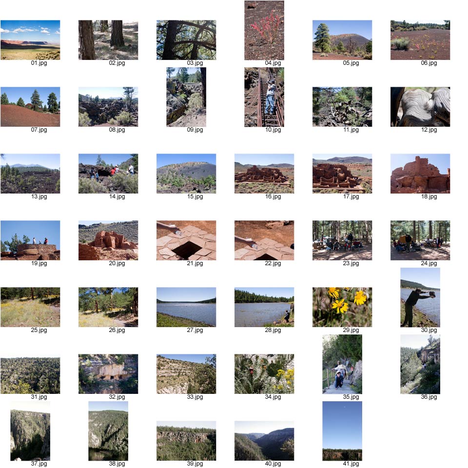 Frame 1 is a shot of the Vermillion Cliffs as seen from the road leading out of the Grand Canyon north rim area. The rest are in the greater Flagstaff area.
