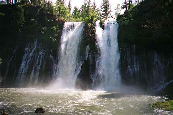 Route 89 then bends southward and passes by McArthur/Burney Falls State Park. This area is quite hot in the summer, but the stream and falls here are all fed by snowmelt. Down where I took these second picture of the falls, the temperature was actually rather chilly.
