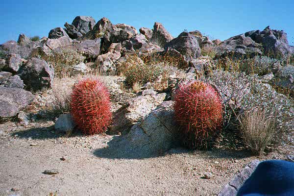 Some barrel cacti on the trail to 49 Palms Oasis.