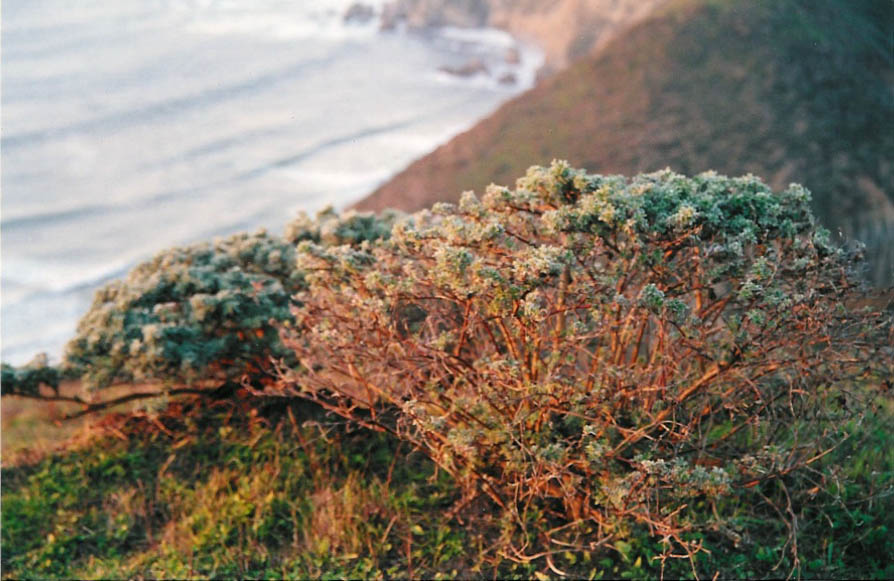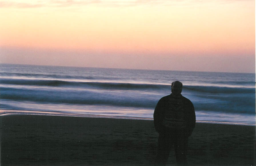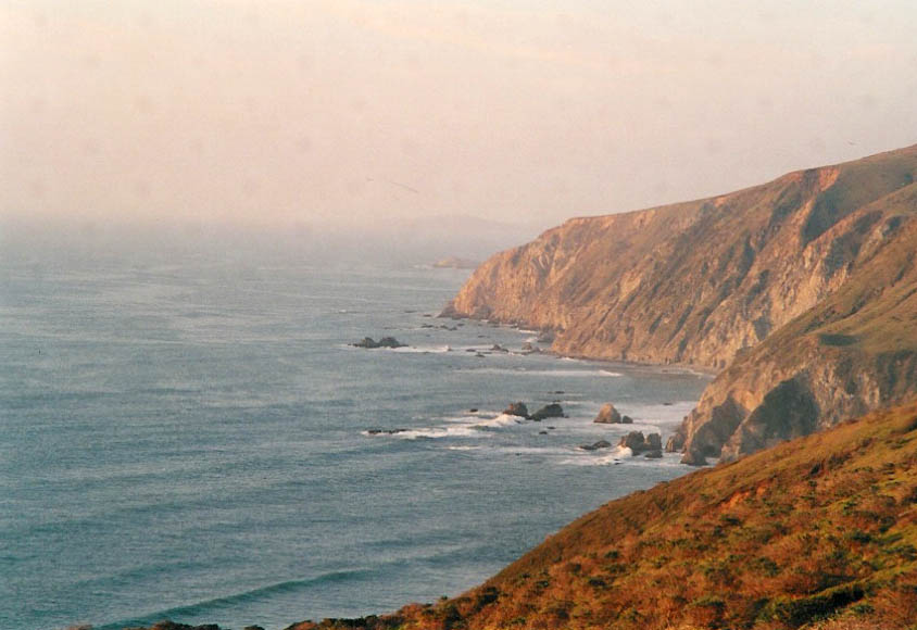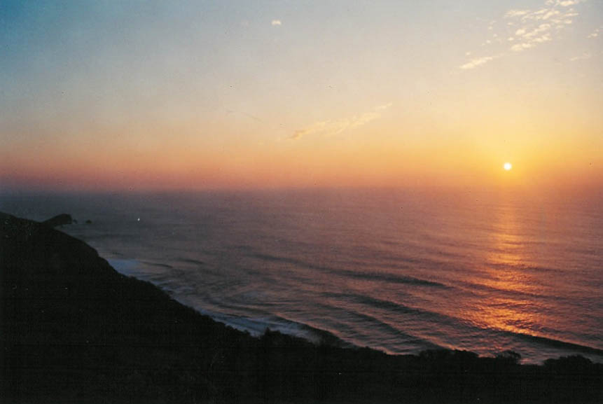 Now that it was fairly dark out, I decided to try some time exposures. After a quick stop at the facility (such as it is) at the parking lot for McClure's Beach, I headed down towards the beach. I took one eight-second exposure (on ISO200 film) of a little rill. It was dark and neither the camera nor I could focus properly, but it still came out OK, all things considered.