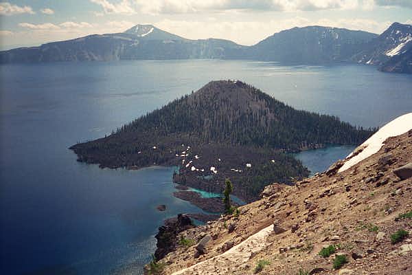 There is a large island, Wizard Island, in the lake. The boat tour normally allows you to stay on the island (and take a later boat back), but the day I was there, for logisitical reasons, they were not allowing island stays. (They had just done emergency preparedness exercises and were apparently short-handed or something.)