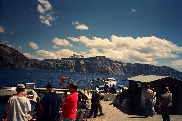 To get to the boat tour, you have to drive around the rim to a spot near (If I recall correctly) the north side of the rim, then hike almost 1000 feet down to the lake level. The hike down is not that bad; it is the one back up that gets you.
