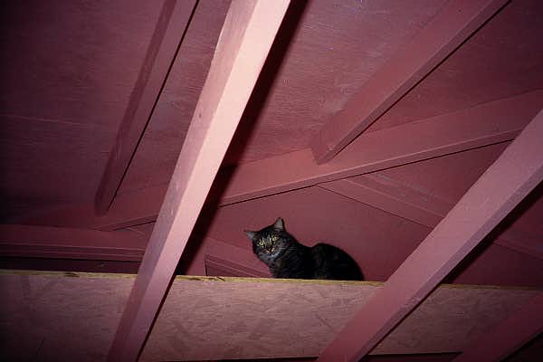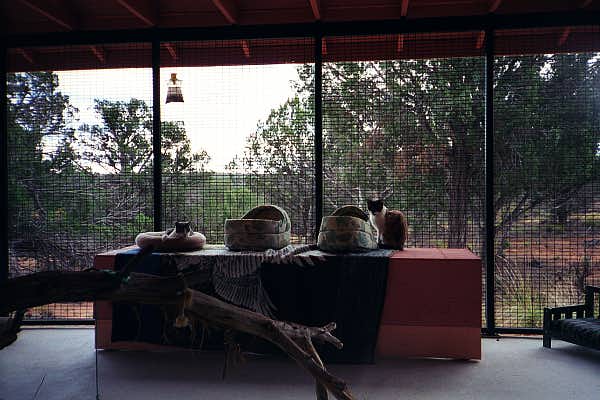 The Best Friends Animal Sanctuary mostly houses cats and dogs, although they have rabbits and horses and a number of other animals.  They have free tours, and I was returning up towards Bryce at the right time for one.  I took a few kitty pictures at Benton's House.  This is where they house cats that, while they are not feral, have special needs (such as daily medical care) that make them unadoptable.  The building is named after its original lord and master, Benton.