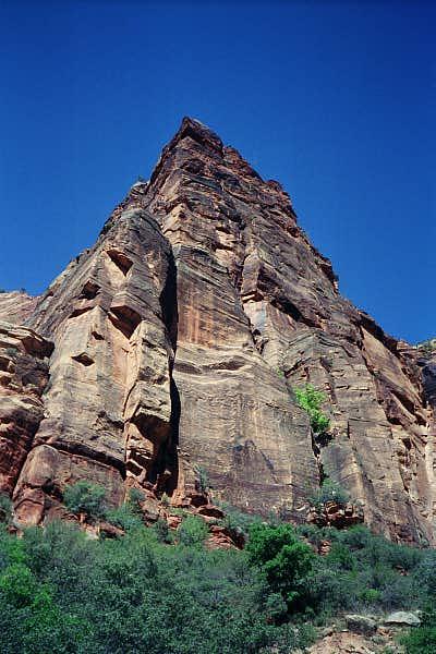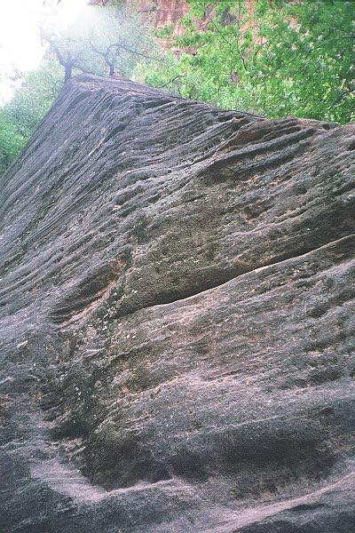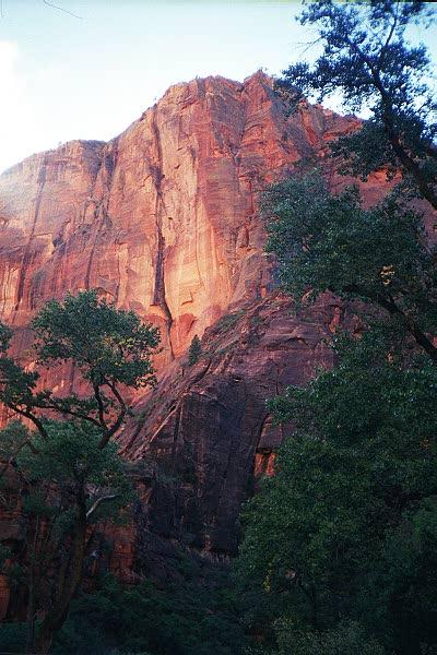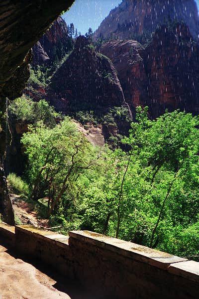 Verticality! Weeping rock lived up to its name. Alas, I ran out of film at this point. The next shot was after going back to camp. |