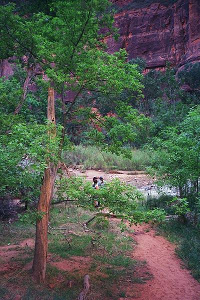 At the Temple of Sinawava. This was where we were to do the pickup. We wandered around for a while and headed towards the narrows. |